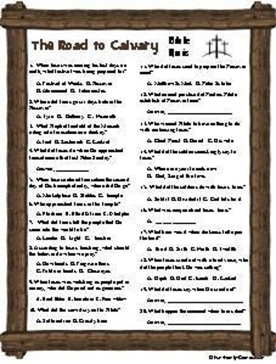 Jesus Death And Resurrection Trivia Quiz Proprofs Quiz from media.proprofs.com Apr 09, 2019 · we hope you have enjoyed our lists of bible trivia questions and answers, as well as the bible trivia quizzes. Oct 24, 2021 · that's why we're pretty sure you'll get most of these easy music trivia questions and answers correct. Stephen lang's the complete book of bible trivia. With over 4,500 questions divided into 14 topical sections, trivia buffs will be tested on such topics as crimes and punishments, military matters, things to eat and drink, and matters of life and death. Here are 5 easy music trivia questions and answers: 3184 new testament trivia questions & answers : Our online jesus trivia quizzes can be adapted to suit your requirements for taking some of the top jesus quizzes. Jun 30, 2021 · a comprehensive database of more than 21 jesus quizzes online, test your knowledge with jesus quiz questions.
